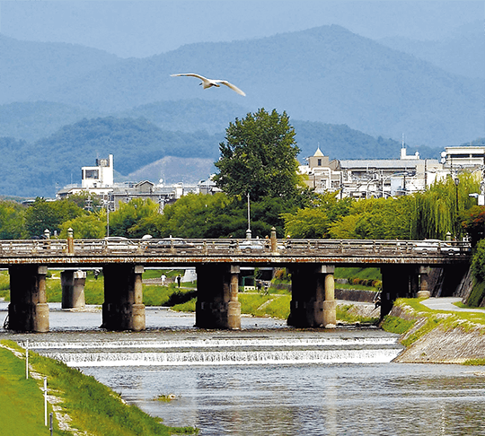 京都にはゆっくりと流れる時間がある。美しい自然と歴史ある街並み、培われた文化に、悠久の時を感じることができる。四条大橋の上で行き交う人波から離れ、立ち止まって川面を見つめると、穏やかな流れに心が癒やされる。ふとわれに返るような気持ち。時には、慌ただしさにかまけて大切なことを見逃してきた自分に気付くこともある。