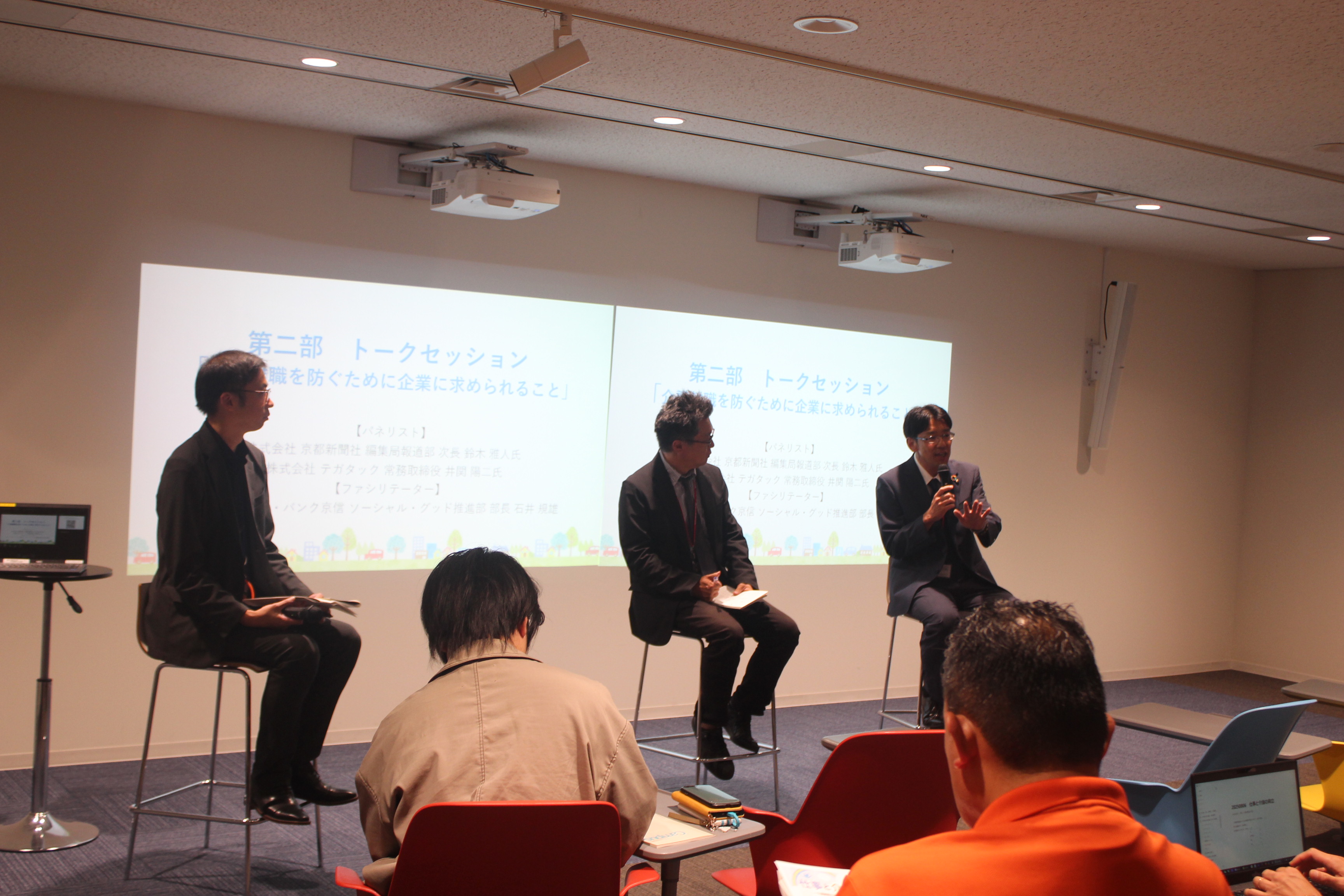 また、介護のために職を失い、経済的に追い詰められた男性が母親と心中を図った京都市内の事件にも言及。「制度のはざまで支援が届かず、経済的にも社会的にも追い詰められた末の悲劇だった」とし、介護制度のあり方について問題提起を行った。遠距離介護や男性介護者の増加、介護保険制度の縮小による家族任せの傾向が強まっていることにも触れ、「従業員の不安を受け止め、支える態勢が重要。ある日突然“やめます”ではなく、“まず相談”できる環境整備を」と呼び掛けた。