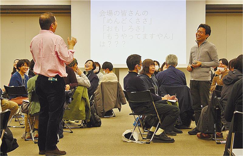 交流会は、参加者全員の自己紹介と、関西弁でアレンジされたユニークなラジオ体操でスタート。会場の空気が徐々に和らいでいった。
