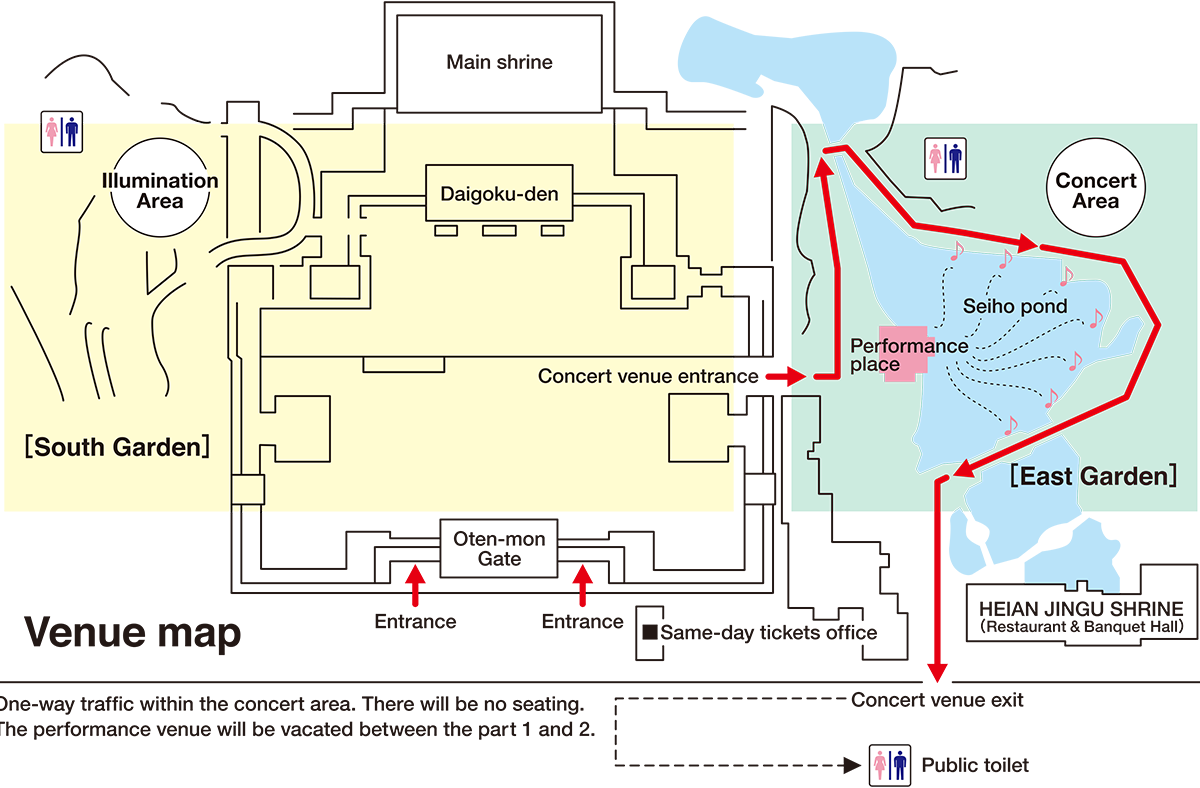 ② They will vacate the venue between the first performance and second for the concert in the East Garden.